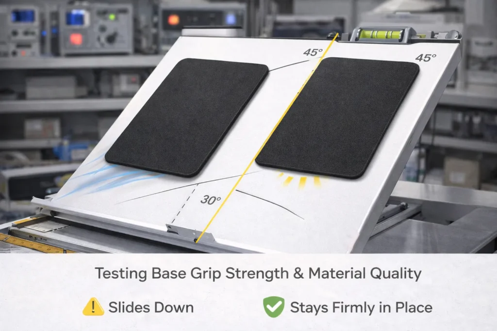 | Slip Angle (Tilt Test) | ~45–50° (pad stays put on steep tilt) | ~20° (pad starts sliding at a mild incline) |