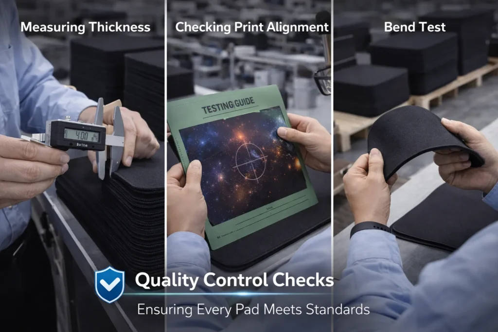 Even with great materials and proper processes, rigorous quality control (QC) is what separates the best manufacturers from the rest. QC measures ensure that every pad coming off the line meets the promised specs and that any defects are caught before shipment. When different factories produce “the same” mouse pad, the level of QA they enforce can lead to one batch being flawless and another having multiple issues. Here’s how QA impacts mouse pad performance: