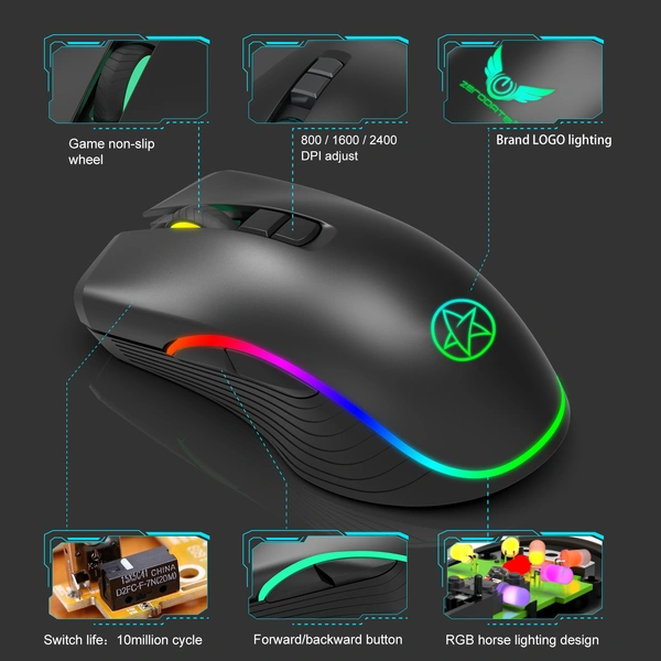 2: Беспроводной приемник, может быть получен в пределах 10 метров беспроводной, 2400 DPl высокоточный двигатель, точный опыт! Удобный захват, наслаждайтесь 24G беспроводной технологии, ffice казуальные игры применимы.