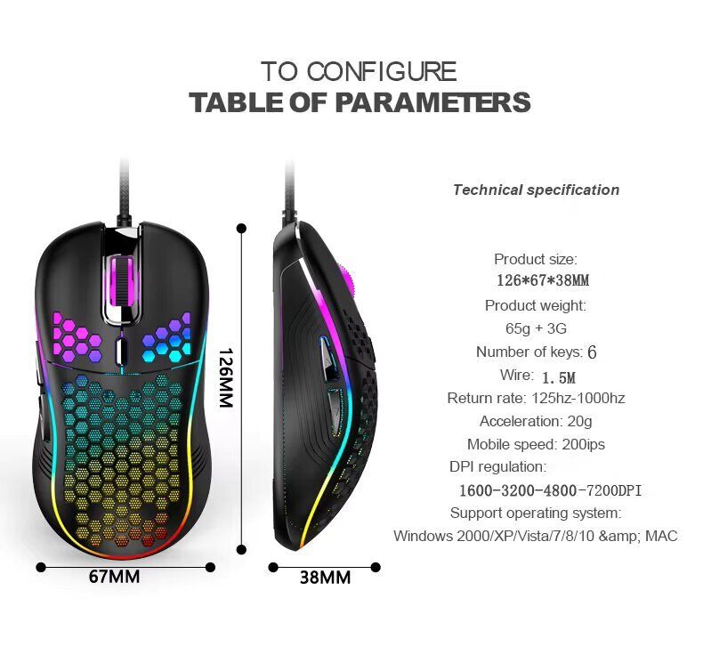 Игровая мышь D110 с цветным проводным отверстием 7200DPI RGB