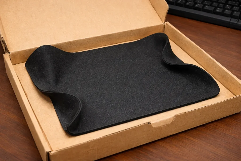 Warped mouse pads are a common frustration. You order a pad online or receive a bulk shipment, only to find it won’t lie flat on the desk. Understanding why this happens requires a look at manufacturing and packaging. From foam “memory” effect to shipping conditions, multiple factors can cause a mouse pad to arrive with bumps or curls. Below, we break down the real causes of warping during packaging and transit – and how to prevent it – with insights straight from manufacturing experts.